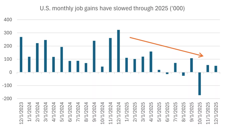 Late last week, we finally got a look at the U.S. labor market without the distortion of government shutdowns. The reality could be that the “great cooling” is underway. December’s NFP (Non-Farm Payrolls) came in at just 50,000, missing the market and accompanied nearly 76,000 in downward revisions for previous months.