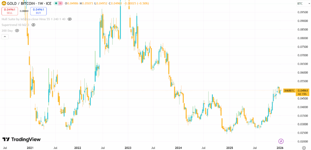 Now we are now entering 2026 with the Gold-to-Bitcoin ratio sitting back at early-2024 levels. This may signal a major “catch-up” trade brewing. If Bitcoin follows the path gold has already paved, we could see a significant upward re-rating as investors diversify their debasement hedges. Even if the path is less exponential than in years past, the “milder corrections” reflect an asset class that has finally found its place in the global financial order.