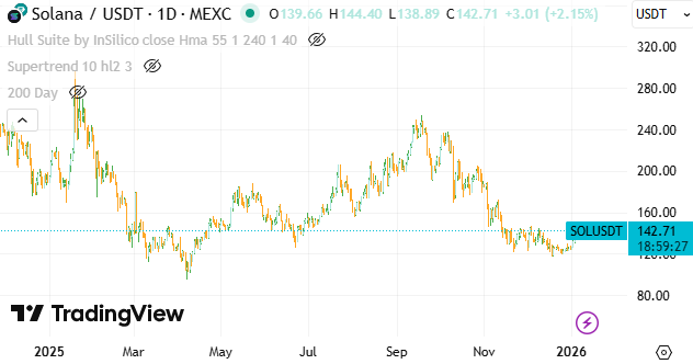 That said, SOL enters the year in a materially stronger position than most peers. A more mature staking base, expanding institutional touchpaints, and continued ecosystem growth leave SOL well-placed to outperform on relative strength once BTC stabilizes or breaks higher. In that case, SOL looks less like a high-beta trade and more like a core alt exposure for the next phase of the cycle.