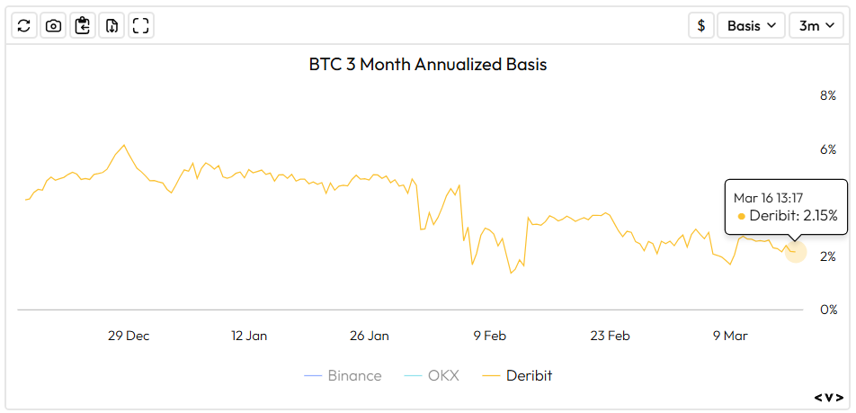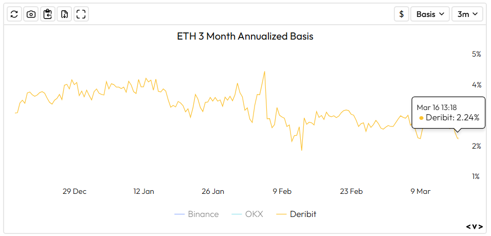 Basis rates for both BTC and ETH have contracted significantly over the past week. Notably, the BTC 90-day annualized rate decreased by approximately 50bps to 2.15%, while ETH currently trades higher at 2.24%. This inversion is anomalous given ETH’s native staking yield; accordingly, we anticipate a convergence of these rates in the near term.