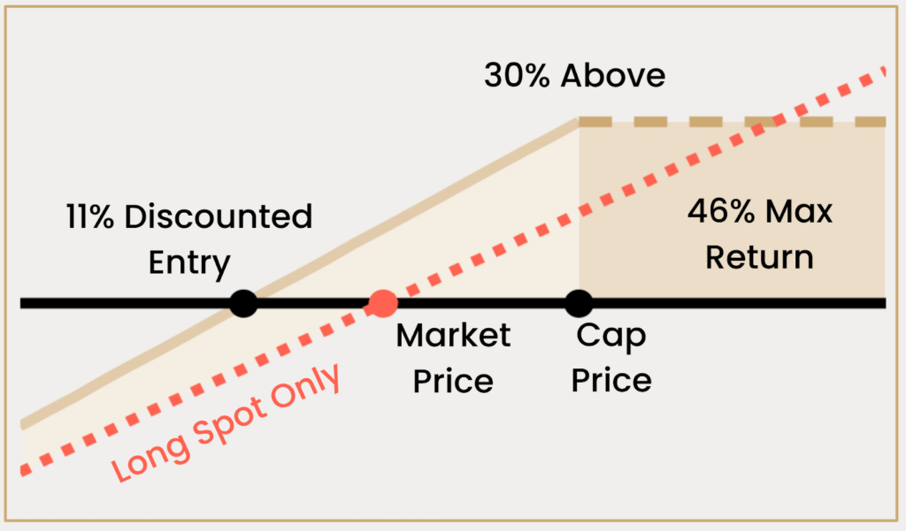 - If SOL expires below the Cap Price, the investor acquires SOL at 11% below the current spot price.