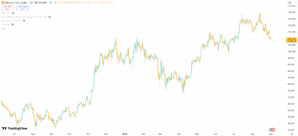 Yet under the hood, the demand story hasn’t gone away. Spot BTC ETFs still pulled in net inflows (+$82.7m on 25 Aug), showing structural buyers are quietly adding even as the market chops. And with Q4 seasonality historically one of BTC’s strongest periods, the longer-term setup remains constructive. For now though, BTC feels like the funding leg for some alt rotation.