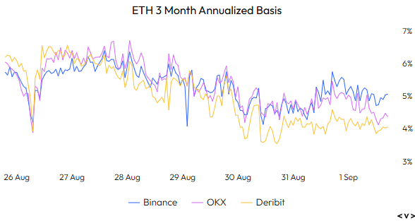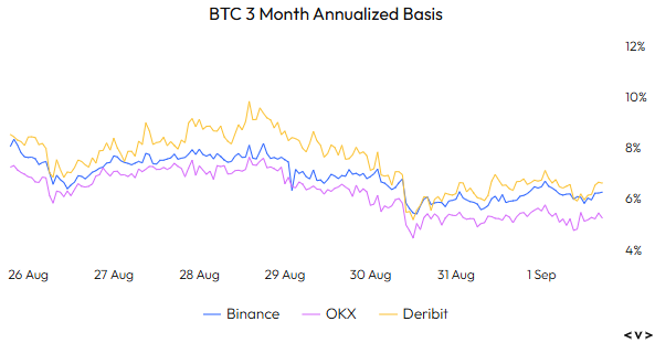 BTC and ETH basis have come off this week to 6.2% and 4.3% respectively.