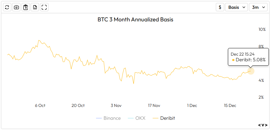 Basis rates have bounced this week with BTC’s 90-day rate up 80bps – 5.08%. ETH’s is up roughly 70 bps – 3.76%.