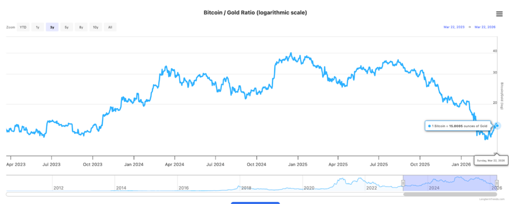 That said, the relative value picture is shifting in Bitcoin’s favour, particularly against gold. Gold surged more than 20% from the start of the year through the onset of the war on a wave of central bank buying, inflation hedging and de-dollarisation flows, while BTC lagged sharply, falling over 45% between last year’s October 10th liquidation event and the start of the conflict. What looked like an insurmountable performance gap just six weeks ago has narrowed by more than 20 percentage points in the past three weeks due to the recent move in gold.