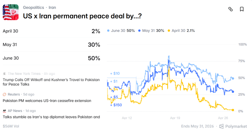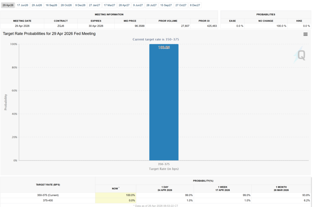 On the institutional side, the DOJ dropped its criminal investigation into Fed Chair Powell on Friday, clearing a significant obstacle to Kevin Warsh’s confirmation as the next Fed Chair. Markets are now pricing a 39% chance of a 25bp cut by December, up from 23% the prior session, it’s still a long way from certainty, but the first meaningful repricing toward easing since the war began. The FOMC meets Tuesday–Wednesday this week, with a hold at 3.50–3.75% near certain.