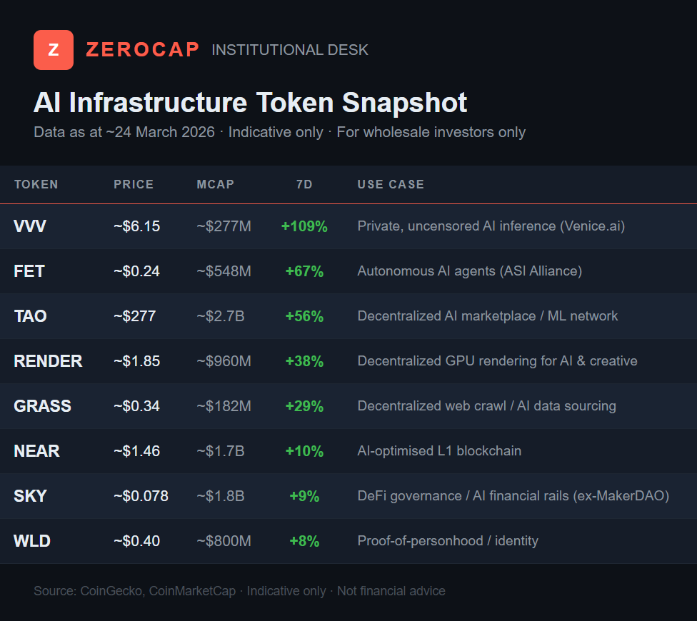 In the backdrop, the AI token infrastructure sector, such as Bittensor (TAO), has seen strong thematic interest for the past few weeks. Last week, the Zerocap desk provided market colour and desk capabilities on this crypto sub-sector here.